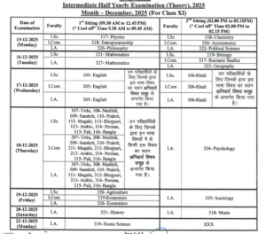 Bihar Board 11th Half Yearly Exam Routine 2025:-