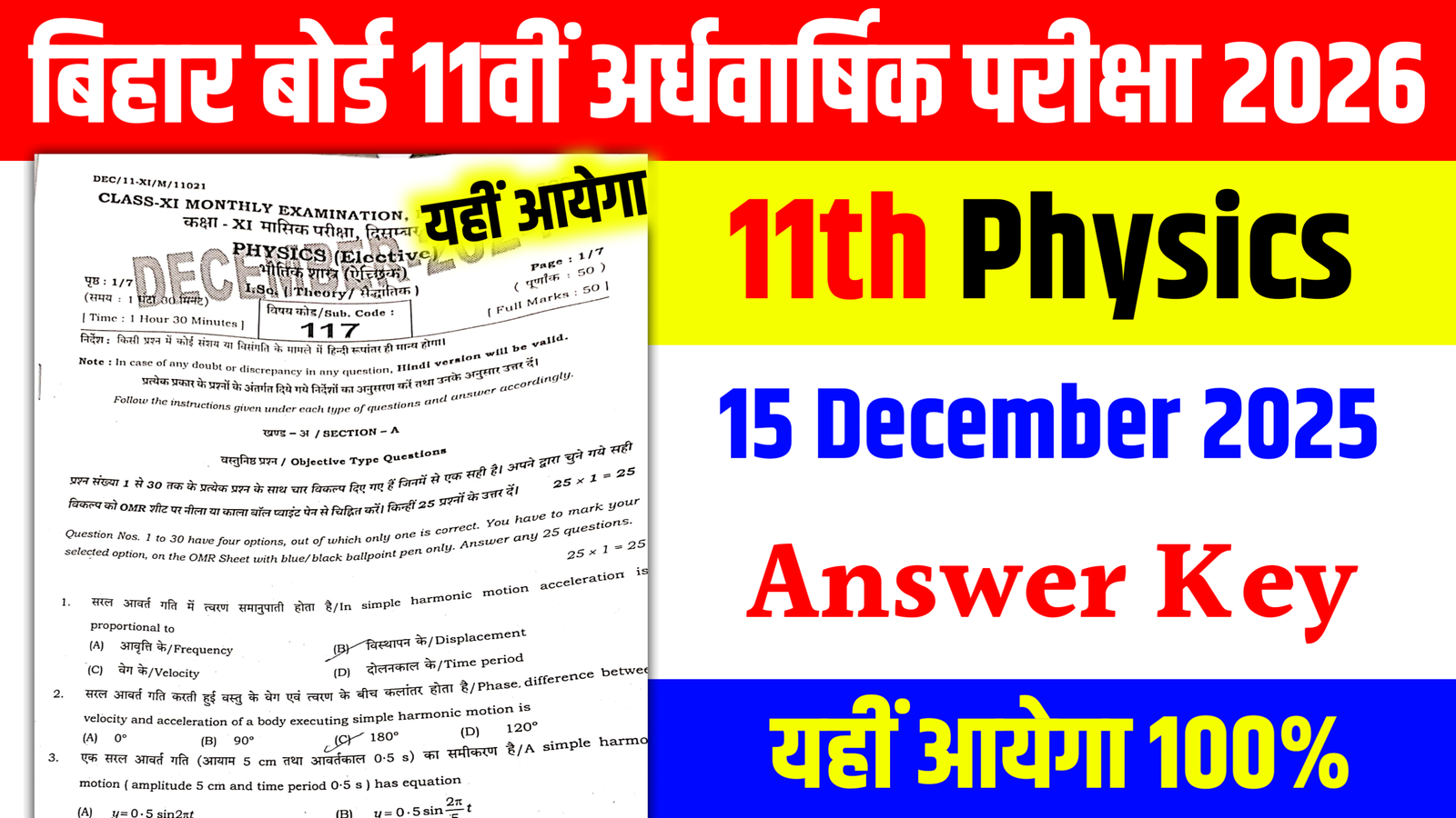 Bihar Board 11th Physics Answer Key 15 December 2025:
