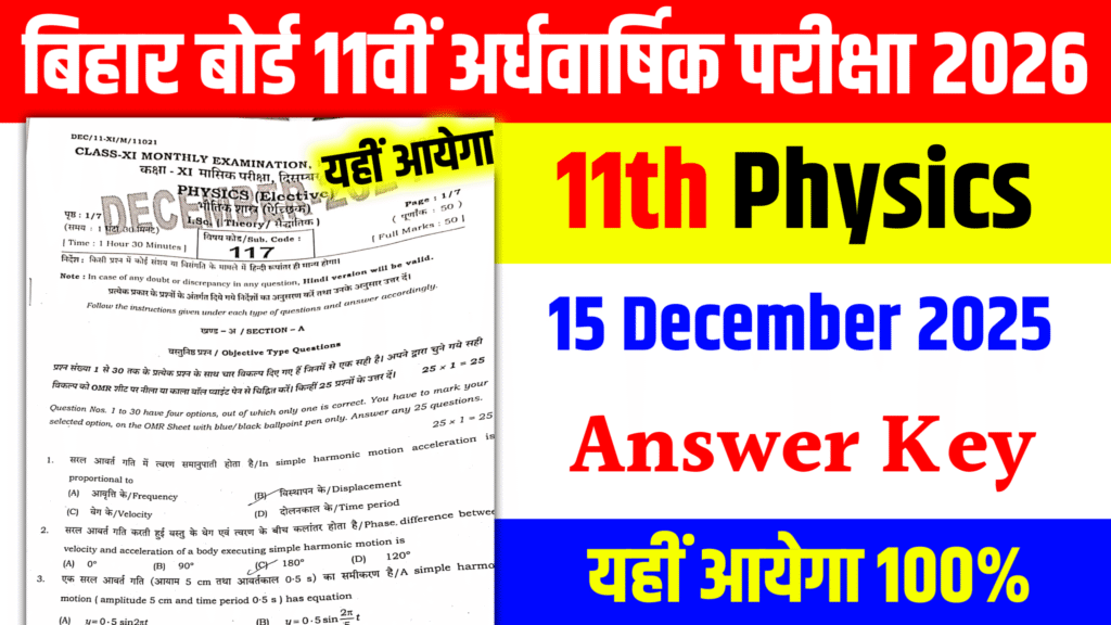 Bihar Board 11th Physics Answer Key 15 December 2025: 11वीं भौतिक शास्त्र अर्धवार्षिक परीक्षा 15 दिसंबर Objective Subjective 2025 Vkc Result Bihar Board 11th Physics Answer Key 15 December 2025: बिहार विद्यालय परीक्षा समिति (BSEB) के द्वारा कक्षा 11वीं अर्धवार्षिक परीक्षा का आयोजन किया गया है 15 सितम्बर से 22 सितम्बर 2025 के बीच आयोजित … Continue reading Bihar Board 11th Physics Answer Key 15 December 2025: 11वीं भौतिक शास्त्र अर्धवार्षिक परीक्षा 15 दिसंबर Objective Subjective 2025