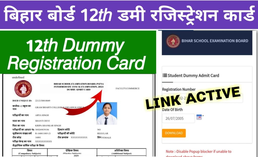 Bihar Board 12th Dummy Registration Card 2026: बिहार बोर्ड कक्षा 12वीं डमी रजिस्ट्रेशन कार्ड यहां से डाउनलोड करें 2026 Vkc Result Bihar Board 12th Dummy Registration Card 2026: बिहार विद्यालय परीक्षा समिति के द्वारा कक्षा 12वीं का डमी रजिस्ट्रेशन कार्ड को जारी कर दिया गया जिस्म की सभी छात्र अपना उसमें त्रुटि खोज के सही … Continue reading Bihar Board 12th Dummy Registration Card 2026: बिहार बोर्ड कक्षा 12वीं डमी रजिस्ट्रेशन कार्ड यहां से डाउनलोड करें 2026