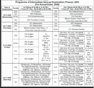 | 22 November , 2025 | 114 Higher Mathematics, 118 Commerce 116 Economics, 121-Persian, 122 Sanskrit, 123-Arabic and 124-Maithili, 117-Fine Arts, 118 Home Science 119-Dance and 120 Music | 127- Security 125 Beautician 129 – Tourism 130-Retail Management 131 Automobile, 132 Electronics & H/W, 133 Beauty and Wellness, 134 Telecom and 135 IT/ITs |