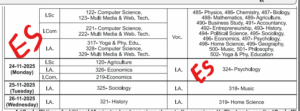 | 26 November 2025 | 120-Agriculture (I.Sc) | 324-Psychology (IA) |